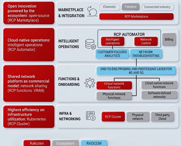 The picture illustrates Radcom’s role in Rakuten’s network architecture. Radcom’s solutions are indispensable to the network operator. They serve as the link between the physical network and cloud operations. They provide the data needed for intelligent operations and handle network troubleshooting. As a result, these solutions form the core of next-generation (virtualized) networks.