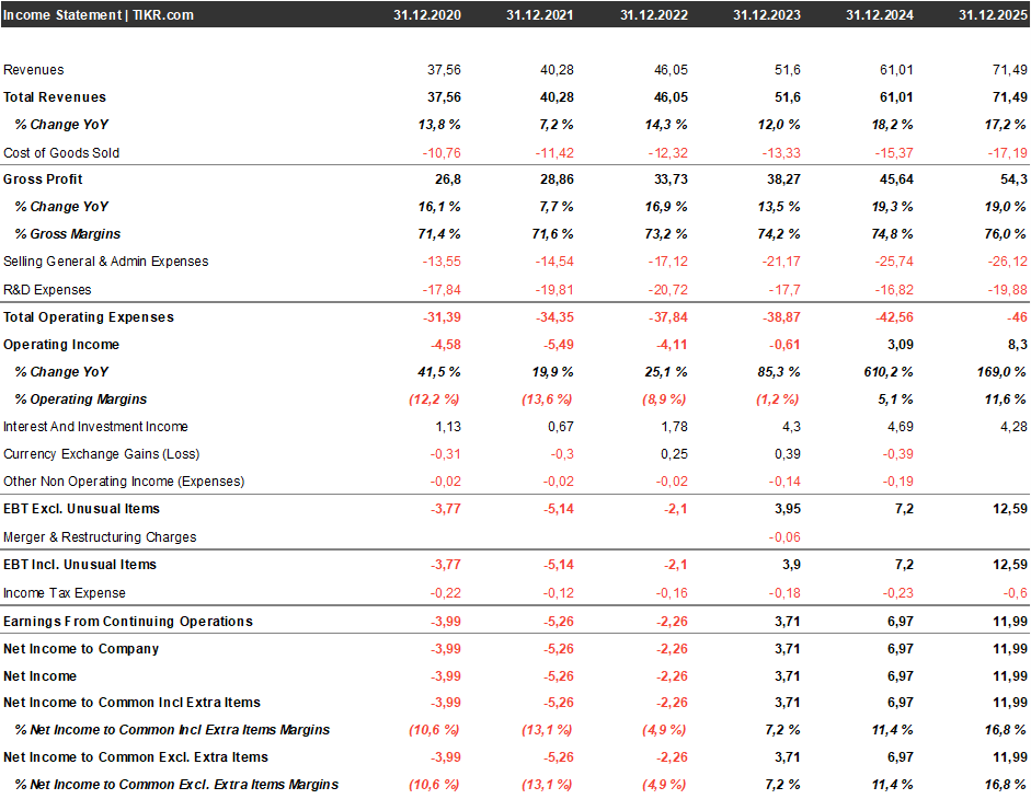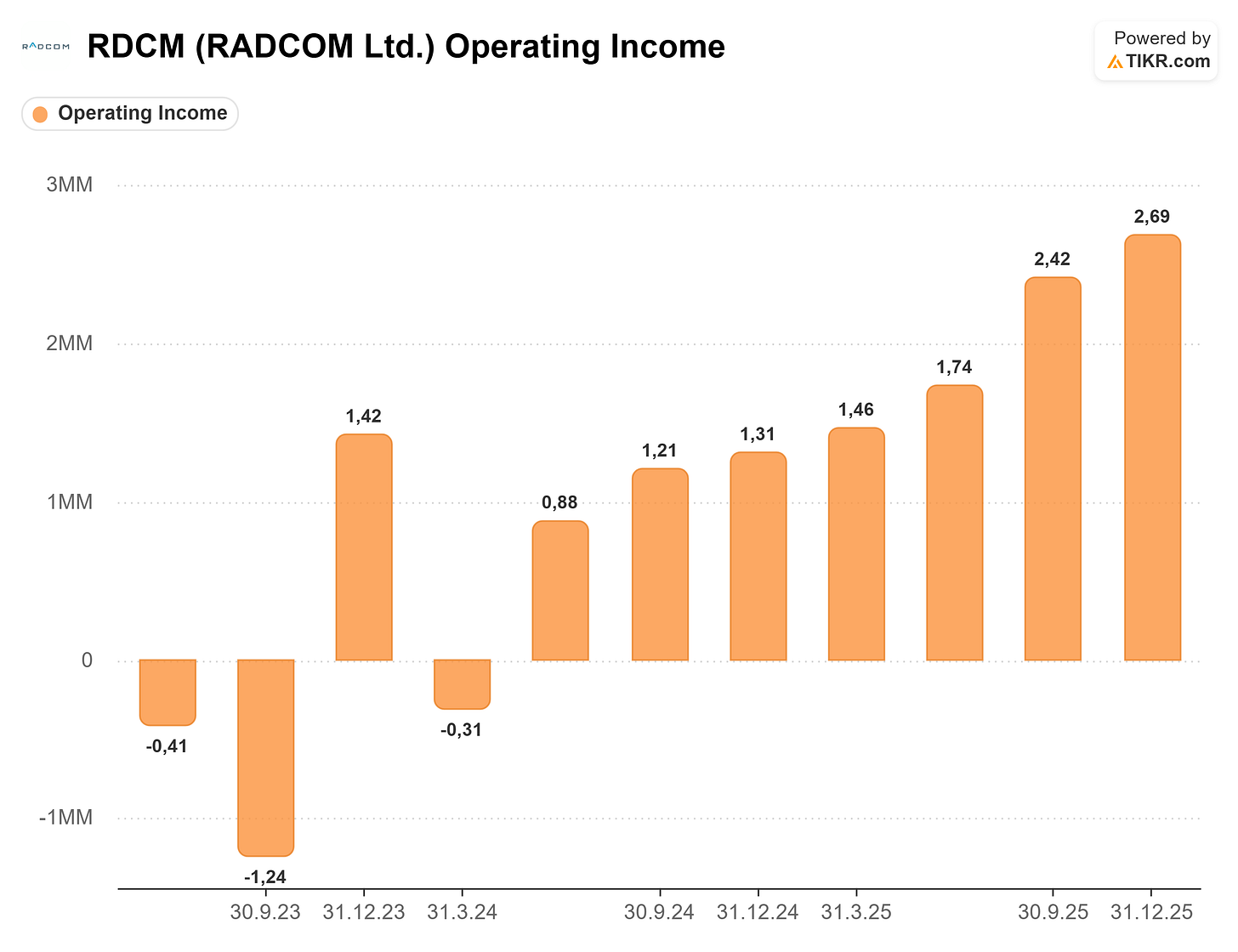 Let’s do a quick calculation: The company closed out 2025 with an annualized operating profit of $10.8 million; for this year, it expects (based on the midpoint of a revenue growth forecast of 8–12%) revenue growth of $7.1 million, which, at an incremental margin of 80%, would result in an additional gross profit of $5.7 million. Assuming they increase selling, general, and administrative expenses (SG&A) and R&D expenditures by $3 million compared to the annualized fourth quarter, we arrive at an additional operating income of $2.7 million and a total operating income for 2026 of approximately $13.5 million, along with a year-end run rate that is significantly higher.